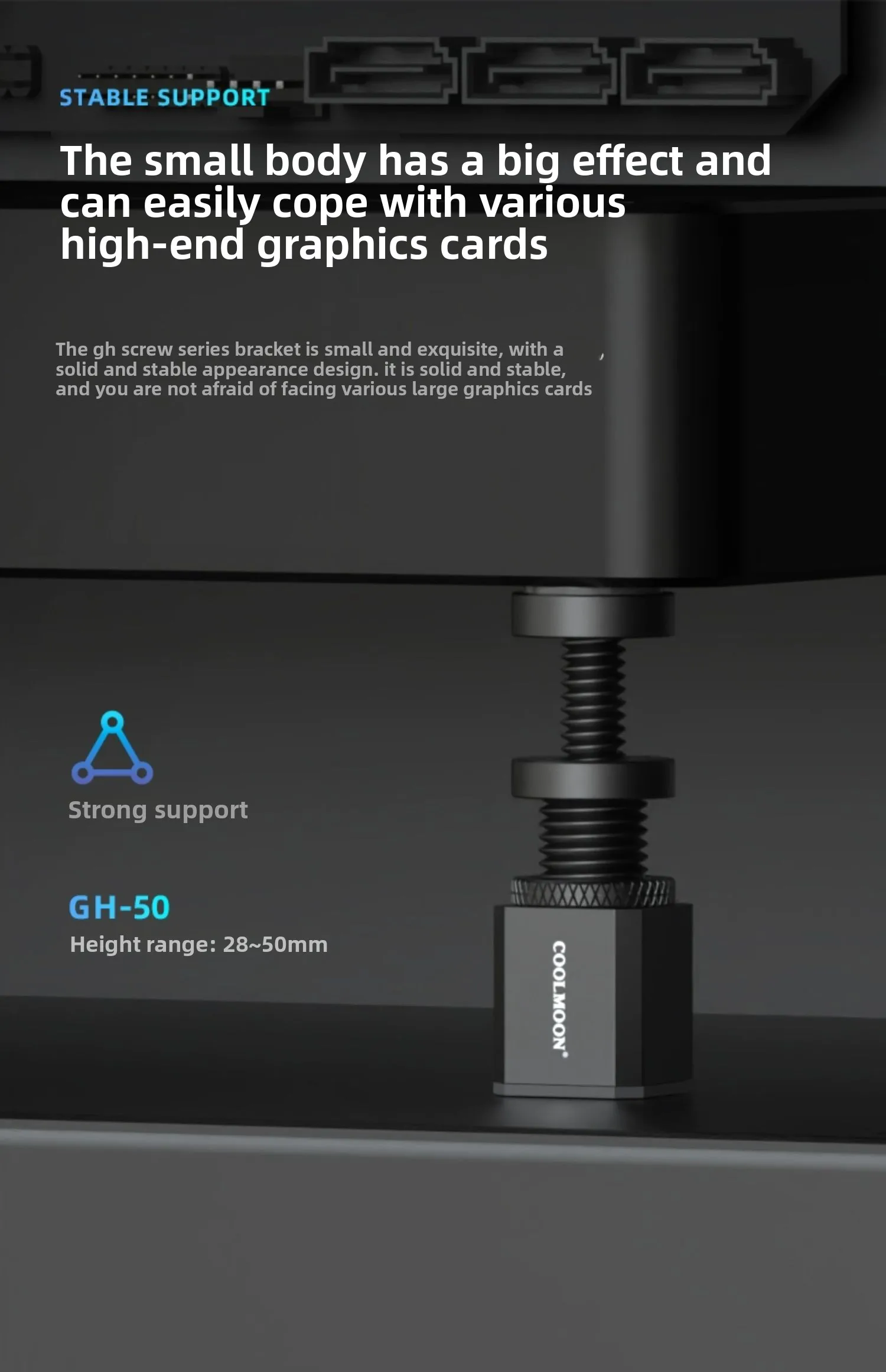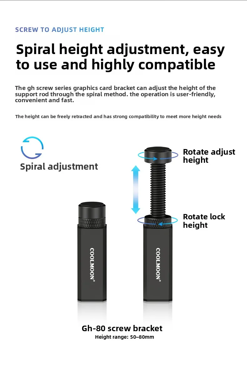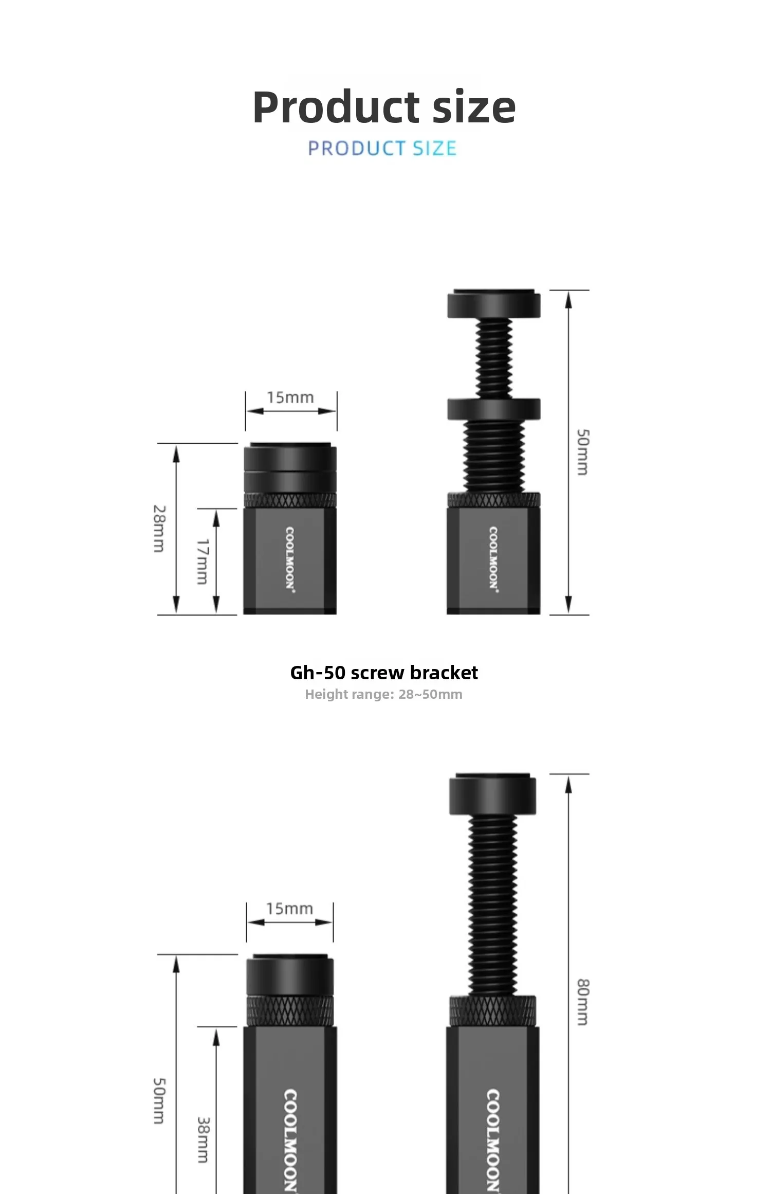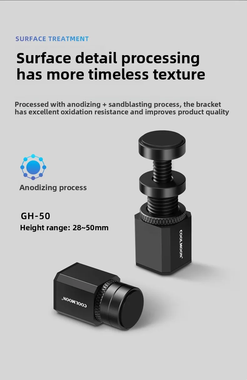 Height Adjustment Range: 28~50mm (GH-50) / 50~80mm (GH-80) / 75~120mm (GH-120)